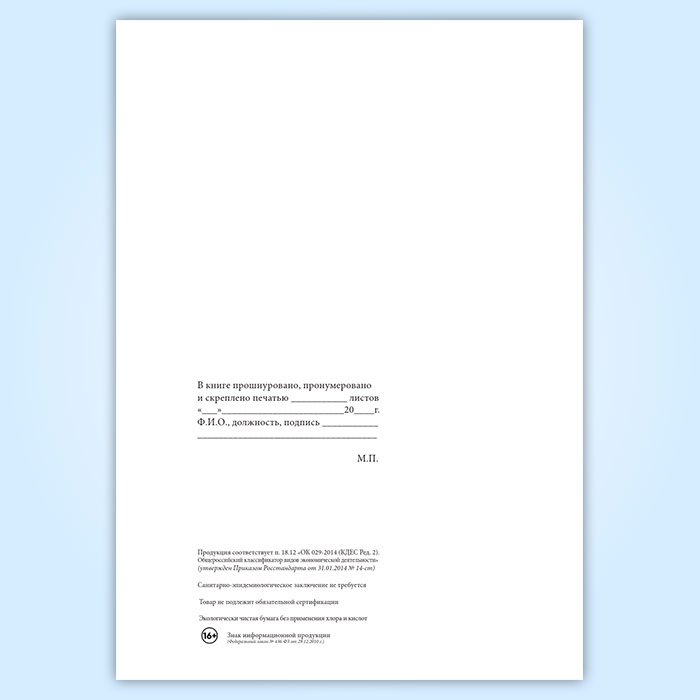 Вы получаете печатную продукцию прошнурованной и c местом для вашей печати в соответствии с действующими нормативными документами: