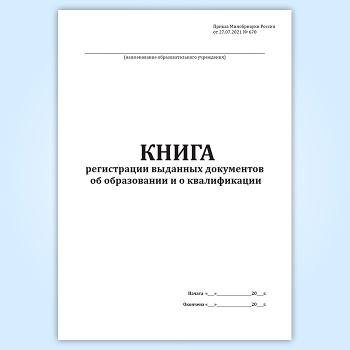 Книга регистрации выданных документов об образовании и о квалификации (Приказ Минобрнауки России от 27.07.2021 № 670) в Тюмени купить