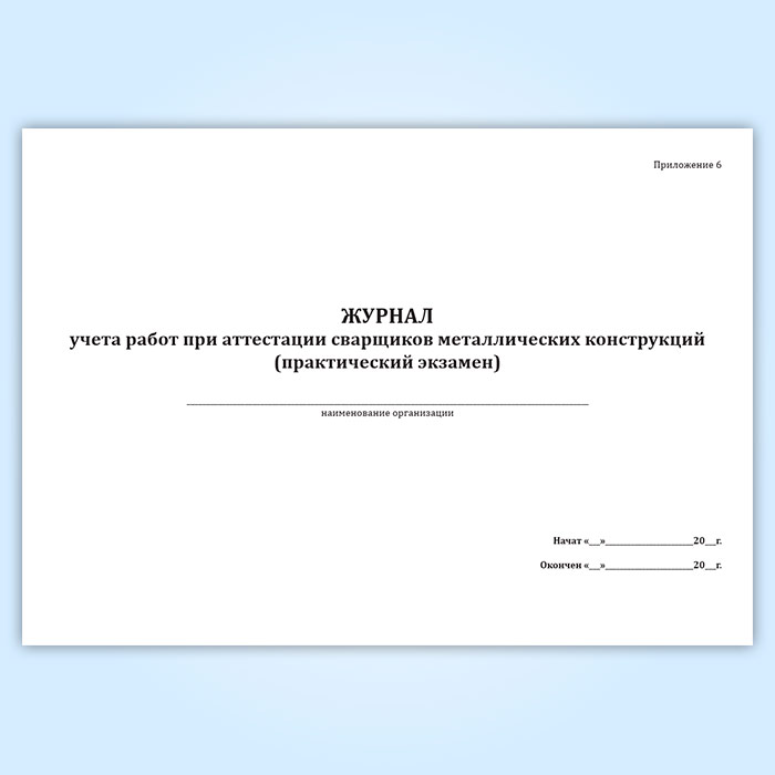 Журнал учета работ при аттестации сварщиков металлических конструкций (практический экзамен) в Тюмени купить
