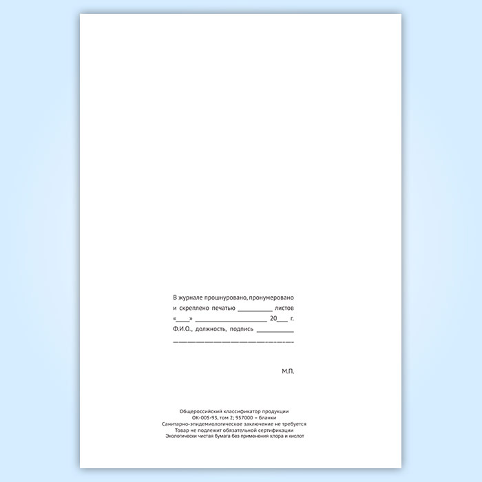 Вы получаете печатную продукцию прошнурованной и c местом для вашей печати в соответствии с действующими нормативными документами: