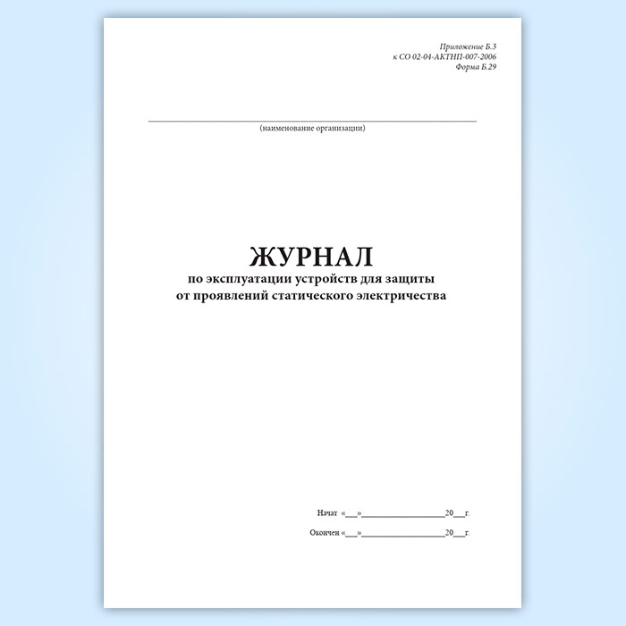 Журнал по эксплуатации устройств для защиты от проявлений статического электричества (форма Б.29) в Тюмени купить