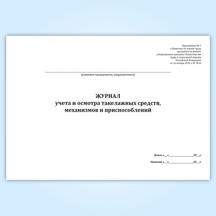 Журнал учета и осмотра такелажных средств, механизмов и приспособлений (Приказ Минтруда России от 16.11.2020 N 782н) в Тюмени купить