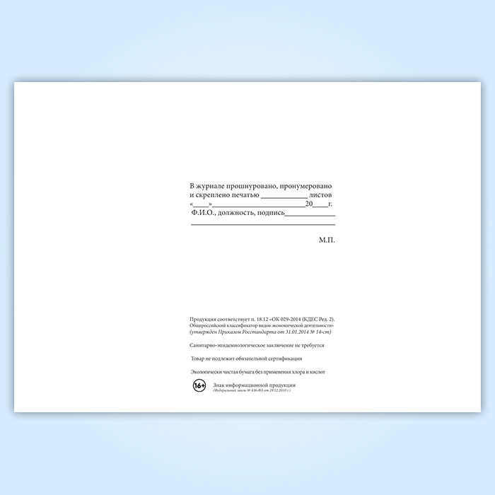 Вы получаете печатную продукцию прошнурованной и c местом для вашей печати в соответствии с действующими нормативными документами: