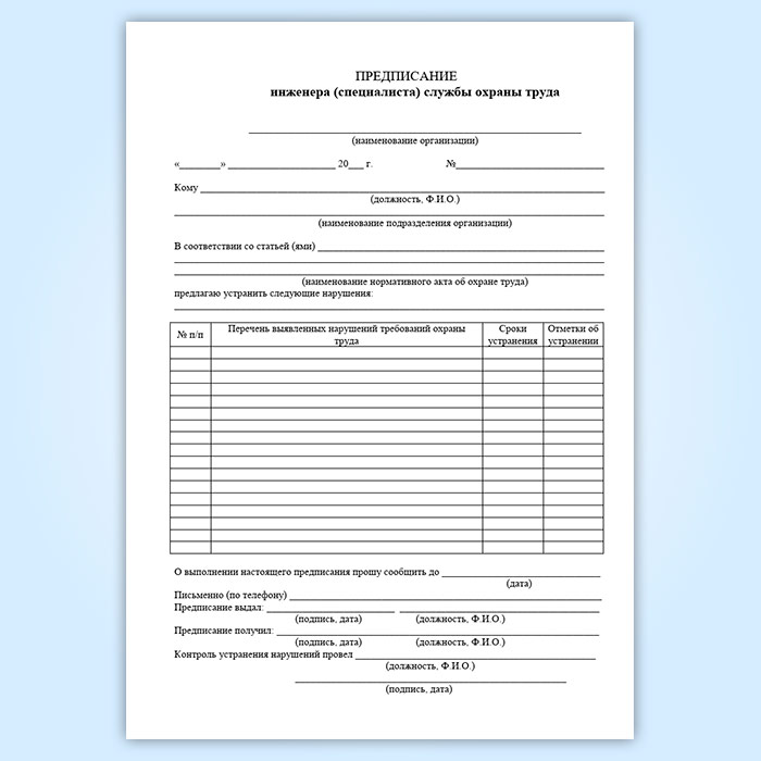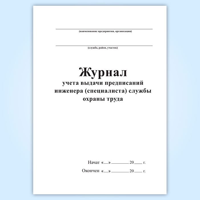 Журнал учета выдачи предписаний инженера (специалиста) службы охраны труда в Тюмени купить