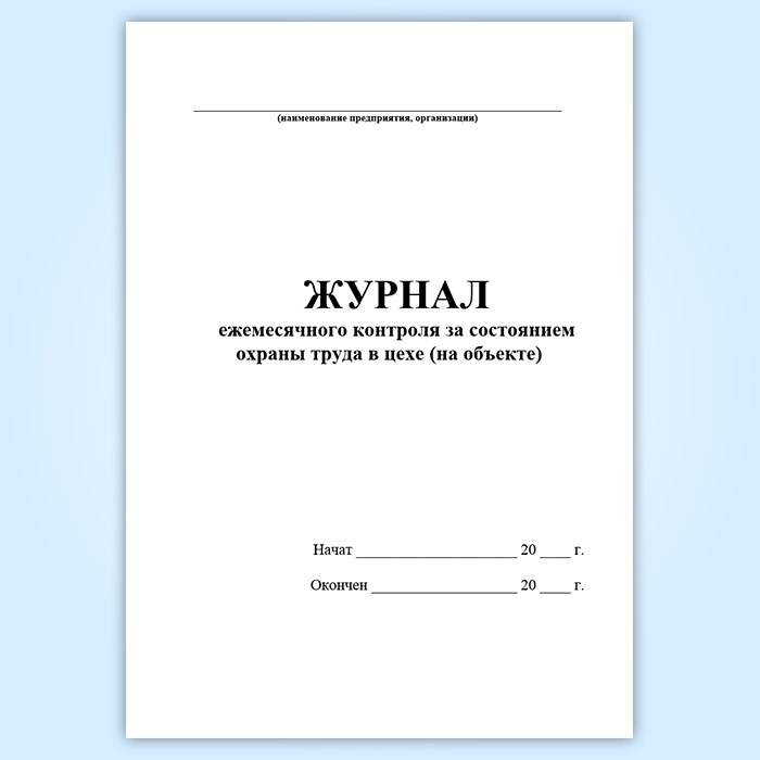 Журнал ежемесячного контроля за состоянием охраны труда в цехе (на объекте) в Тюмени купить