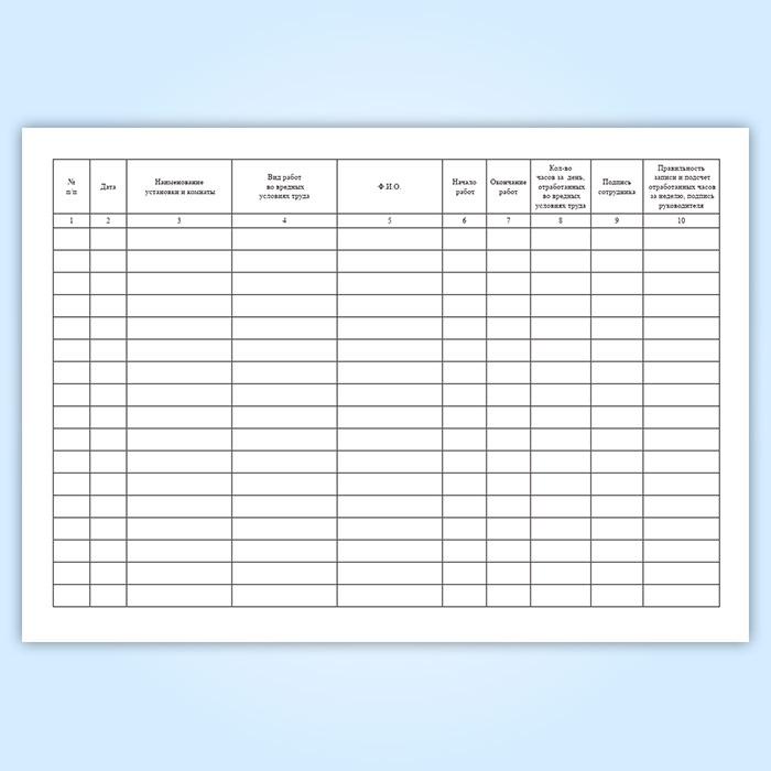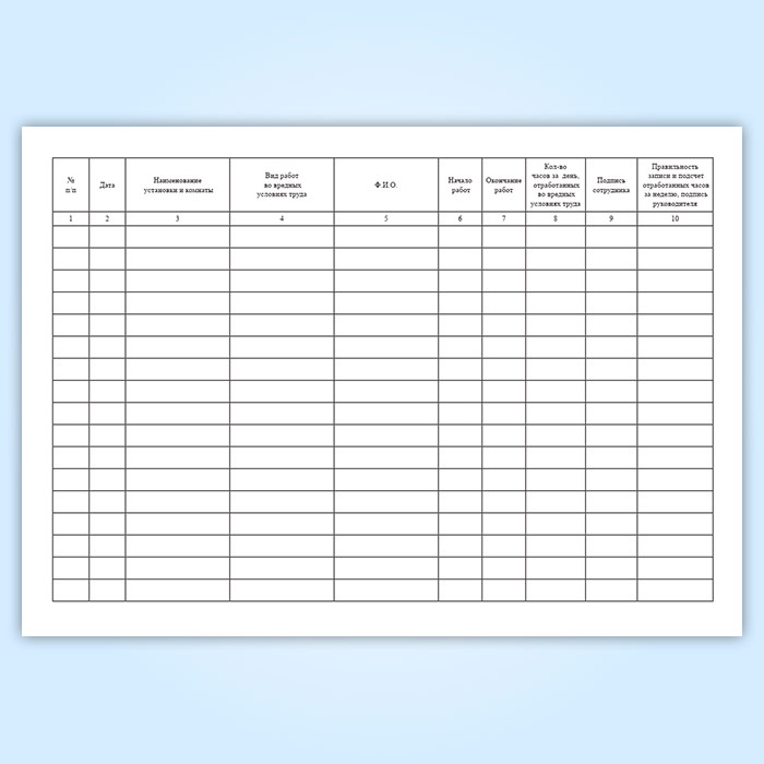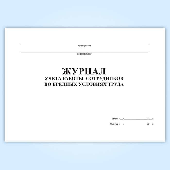 Журнал учета работы сотрудников во вредных условиях труда в Тюмени купить