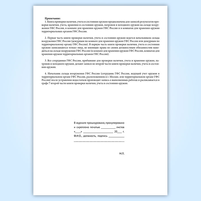 Книга проверки наличия, учета и состояния оружия (форма 20) в Тюмени купить