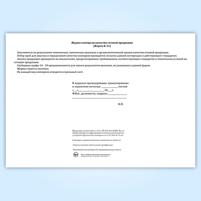 Журнал контроля качества готовой продукции (форма К-11) в Тюмени купить