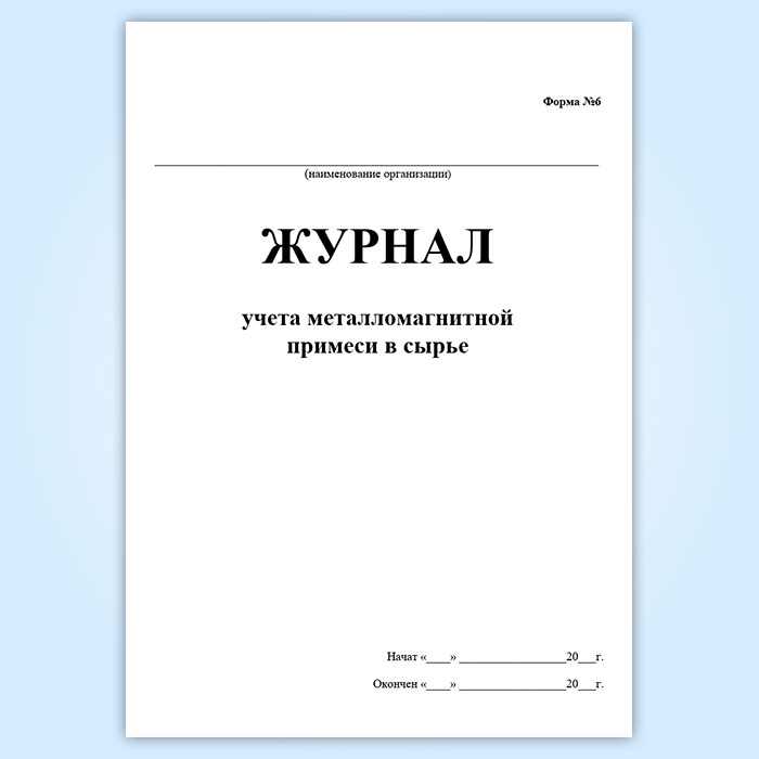 Журнал учета металломагнитной примеси в сырье (форма № 6) в Тюмени купить