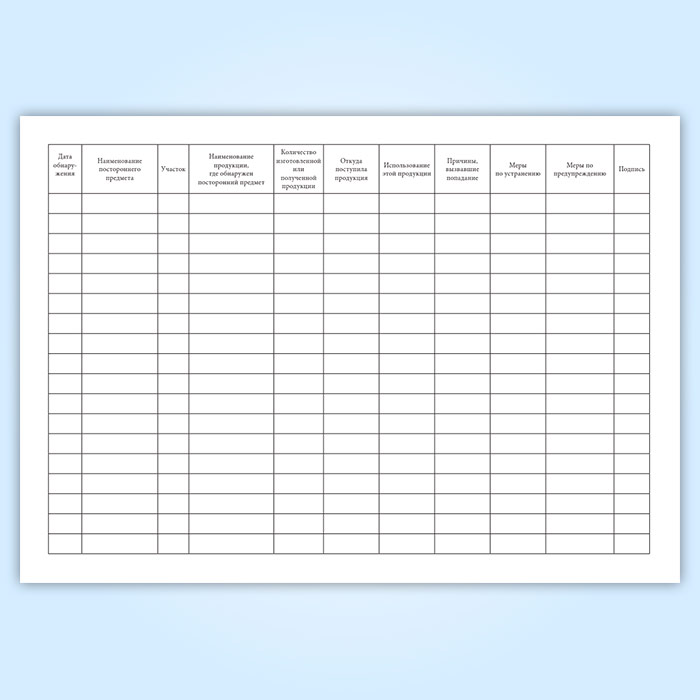 Журнал учета посторонних предметов и включений, обнаруженных в сырье, продукции на производственных участках в Тюмени купить