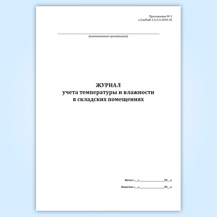 Журнал учета температуры и влажности в складских помещениях (СанПиН 2.3/2.4.3590-20) в Тюмени купить