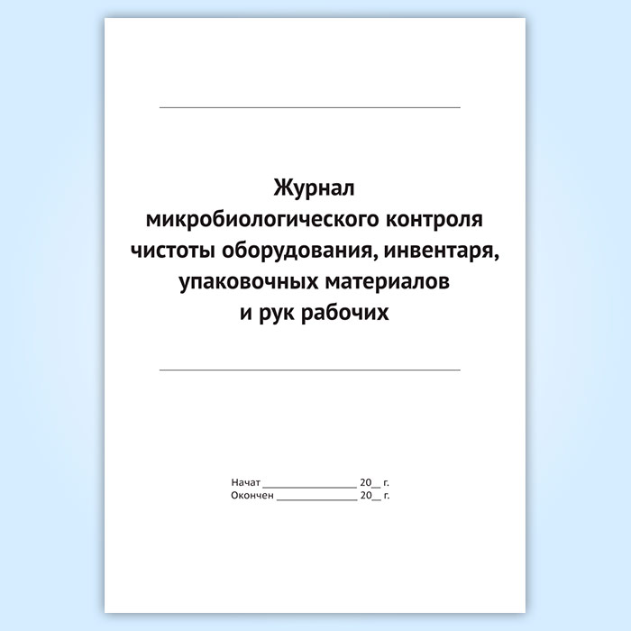 Журнал микробиологического контроля чистоты оборудования, инвентаря, упаковочных материалов и рук рабочих в Тюмени купить