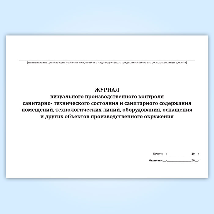 Журнал визуального производственного контроля санитарно-технического состояния и санитарного содержания помещений, технологических линий, оборудования, оснащения и других объектов производственного окружения в Тюмени купить