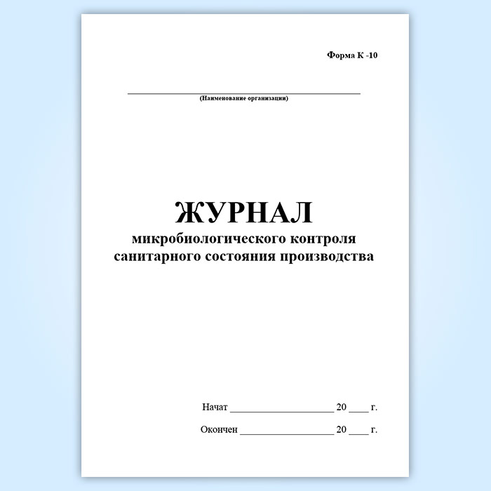 Журнал микробиологического контроля санитарного состояния производства (форма К-10) в Тюмени купить