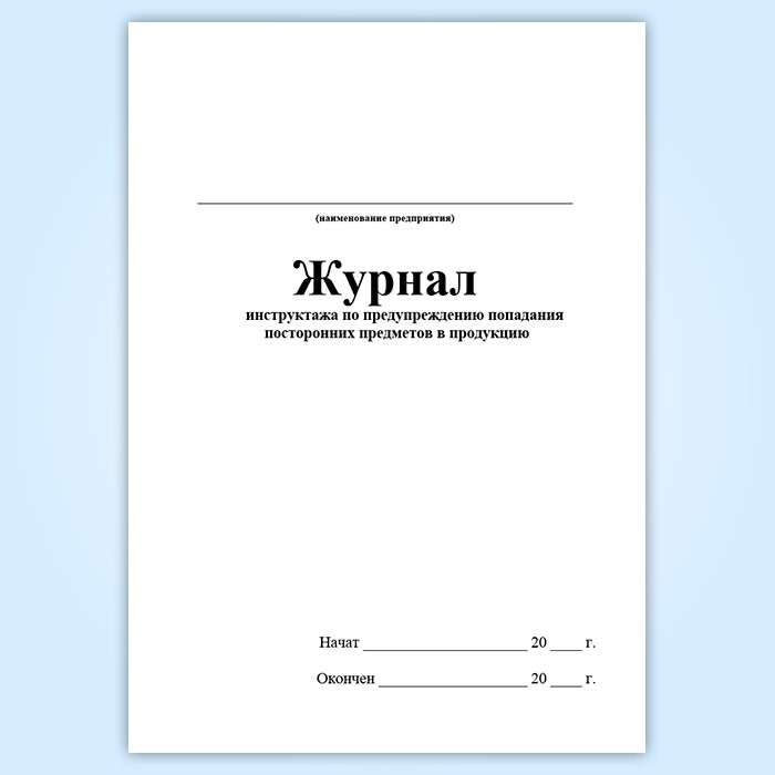 Журнал инструктажа по предупреждению попадания посторонних предметов в продукцию в Тюмени купить