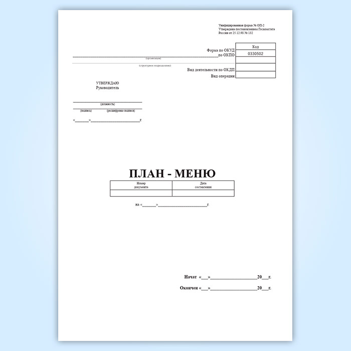 Журнал План-меню (форма ОП-2) в Тюмени купить