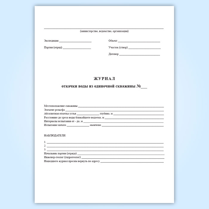 Журнал откачки воды из одиночной скважины (форма УГ-36) в Тюмени купить