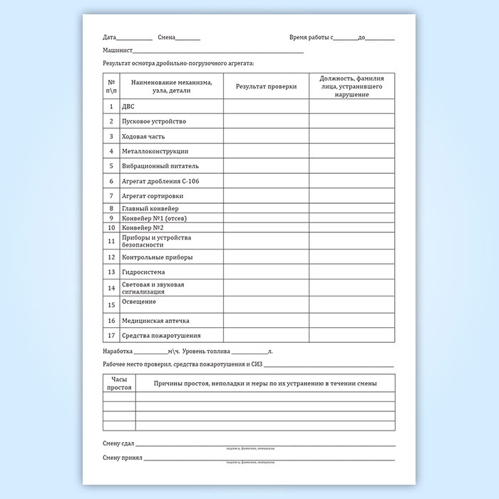Журнал приема-сдачи смены дробильно-погрузочного агрегата в Тюмени купить