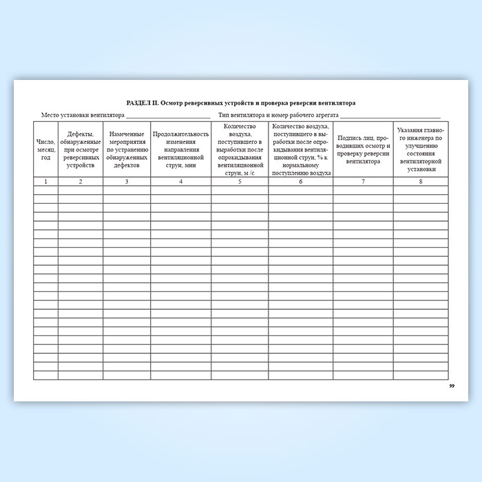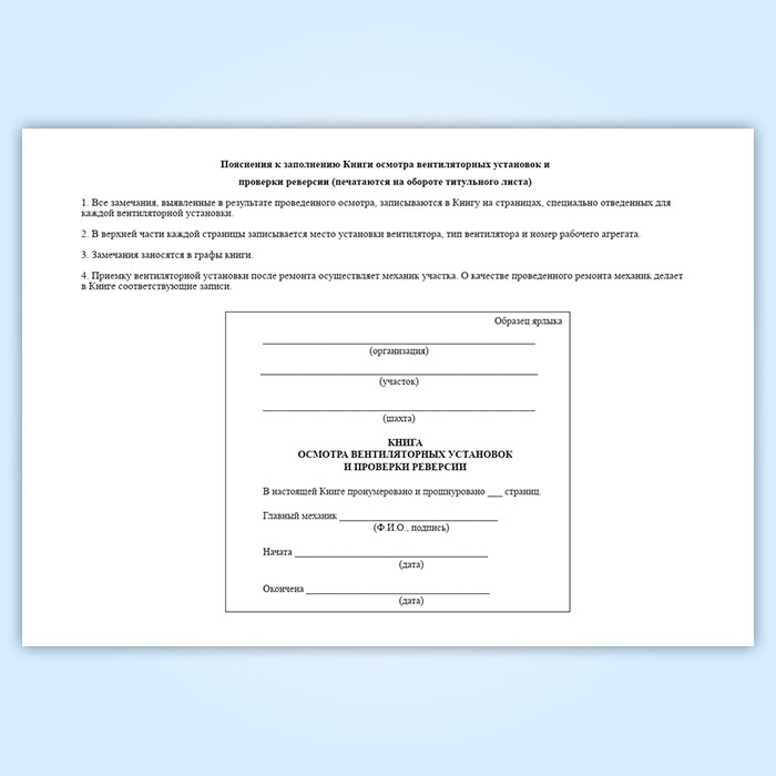 Книга осмотра вентиляторных установок и проверки реверсии в Тюмени купить