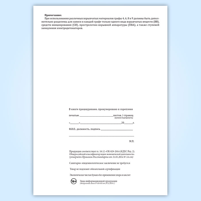 Книга учета выдачи и возврата взрывчатых материалов в Тюмени купить