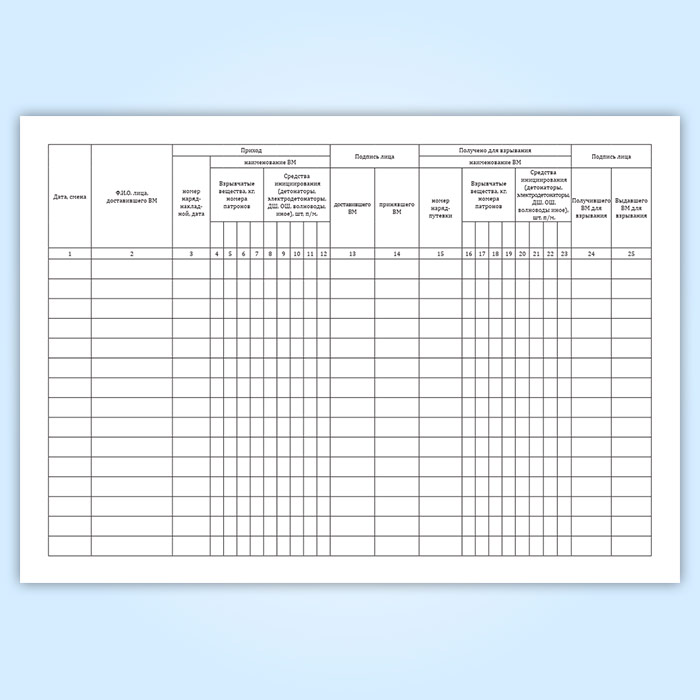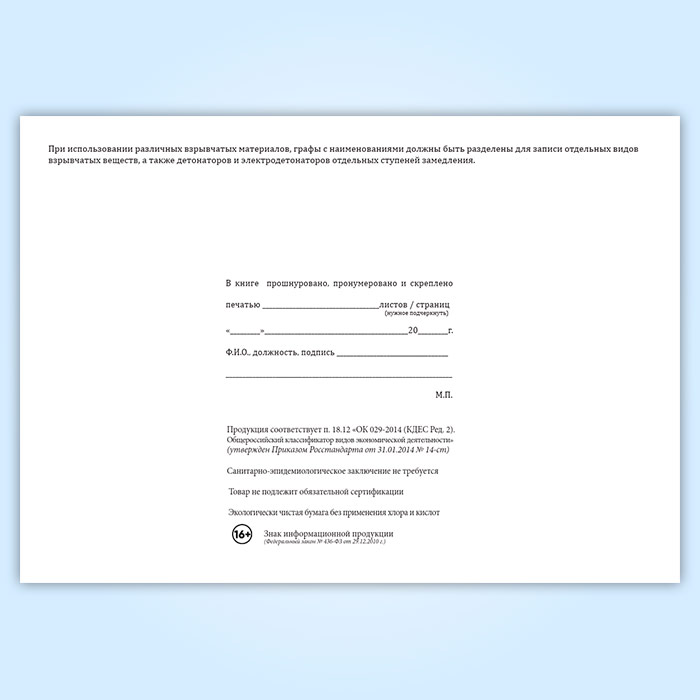 Книга учета прихода и расхода взрывчатых материалов участкового пункта хранения ВМ в Тюмени купить
