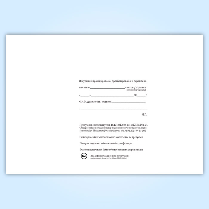 Вы получаете печатную продукцию прошнурованной и c местом для вашей печати в соответствии с действующими нормативными документами: