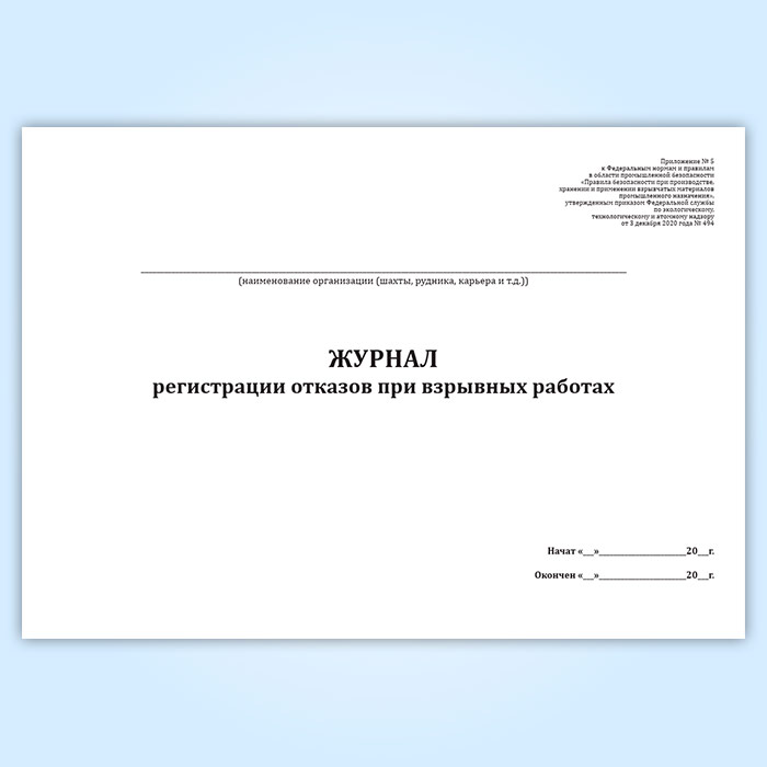 Журнал регистрации отказов при взрывных работах в Тюмени купить