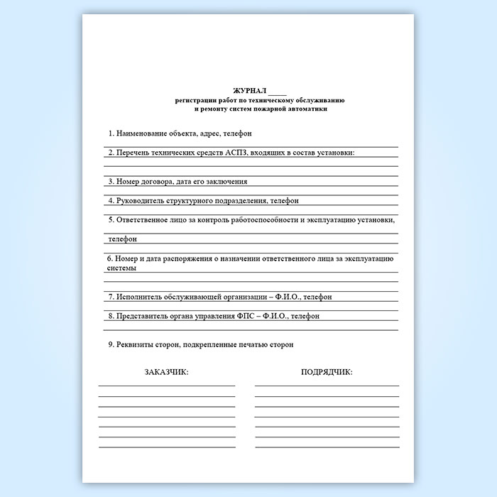 Журнал регистрации работ по техническому обслуживанию и ремонту систем пожарной автоматики в Тюмени купить