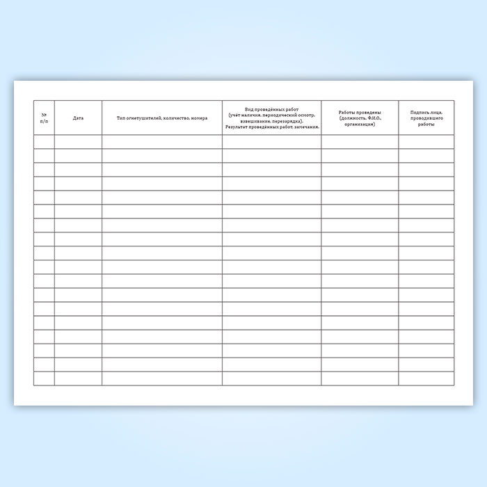 Журнал учета наличия, периодического осмотра и перезарядки огнетушителей в Тюмени купить