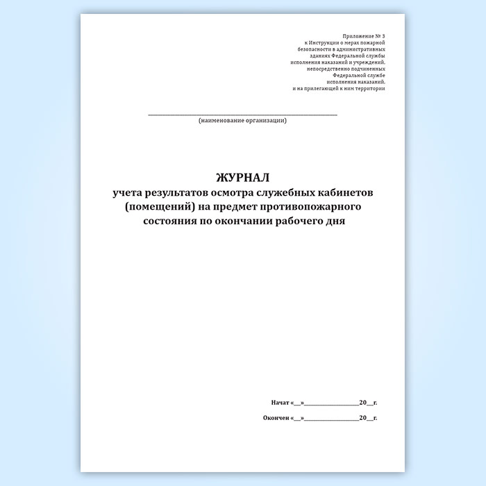 Журнал учета результатов осмотра служебных кабинетов (помещений) на предмет противопожарного состояния по окончании рабочего дня в Тюмени купить