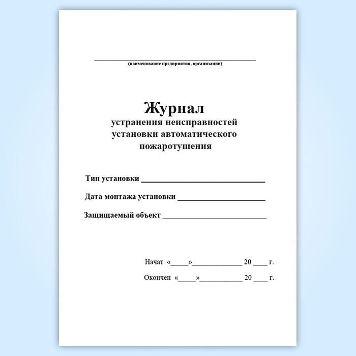 Журнал устранения неисправностей установки автоматического пожаротушения в Тюмени купить