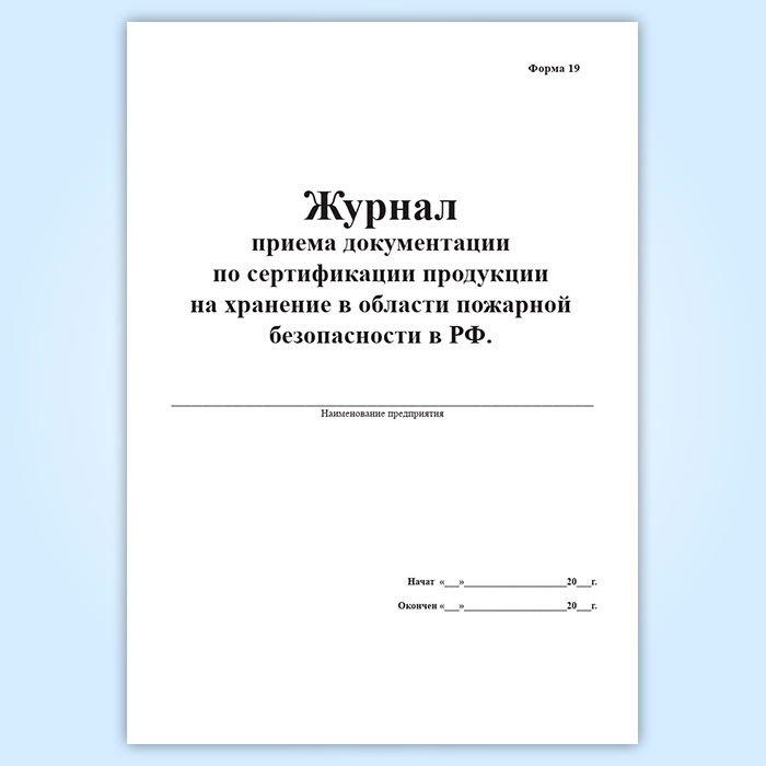 Журнал приема документации по сертификации продукции на хранение в области пожарной безопасности в РФ (форма 19) в Тюмени купить