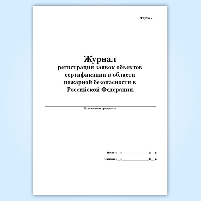 Журнал регистрации заявок объектов сертификации в области пожарной безопасности в Российской Федерации (форма 9) в Тюмени купить