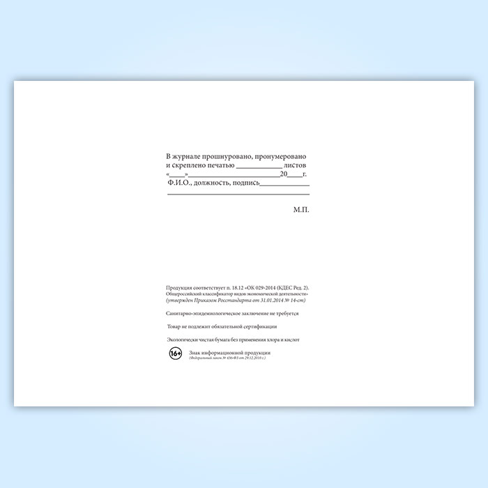 Вы получаете печатную продукцию прошнурованной и c местом для вашей печати в соответствии с действующими нормативными документами: