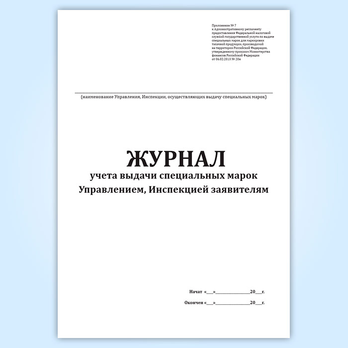 Журнал учета выдачи специальных марок Управлением, Инспекцией заявителям в Тюмени купить