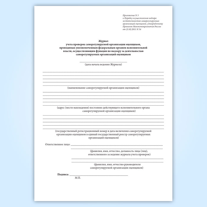 Журнал учета проверок саморегулируемой организации оценщиков, проводимых уполномоченным федеральным органом исполнительной власти, осуществляющим функции по надзору за деятельностью саморегулируемых организаций оценщиков в Тюмени купить