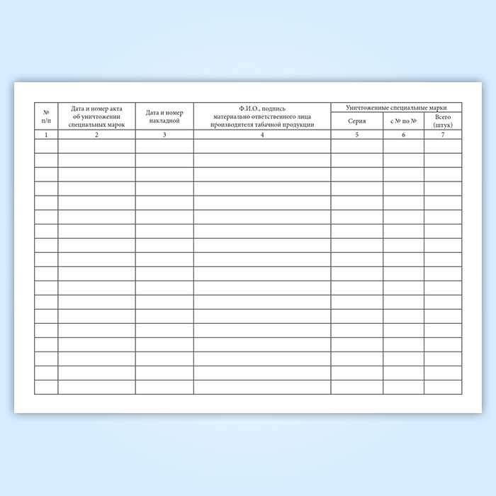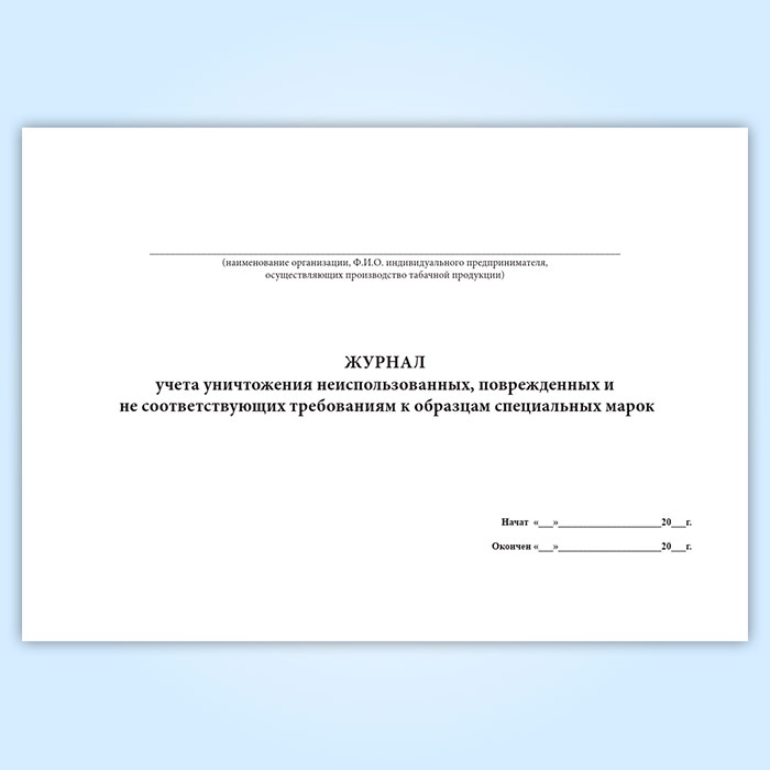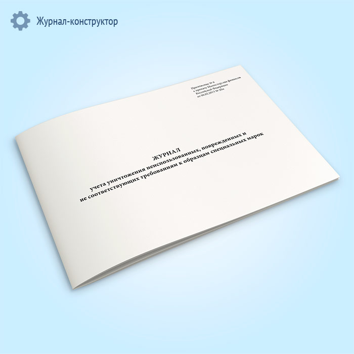 Журнал учета уничтожения неиспользованных, поврежденных и не соответствующих требованиям к образцам специальных марок в Тюмени купить
