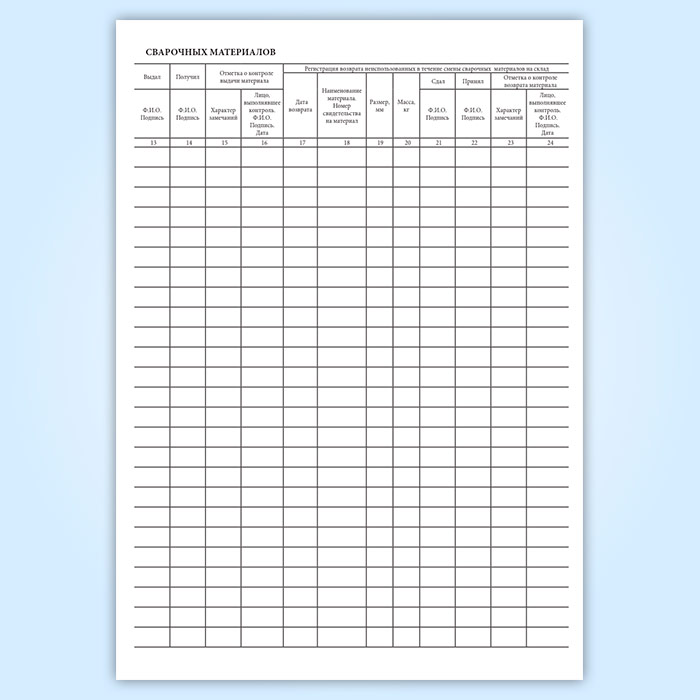 Журнал учета выдачи в производство и возврата неиспользованных сварочных материалов в Тюмени купить