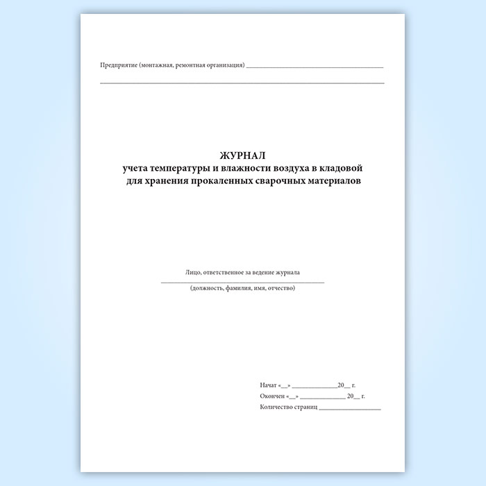 Журнал учета температуры и влажности воздуха в кладовой для хранения прокаленных сварочных материалов в Тюмени купить