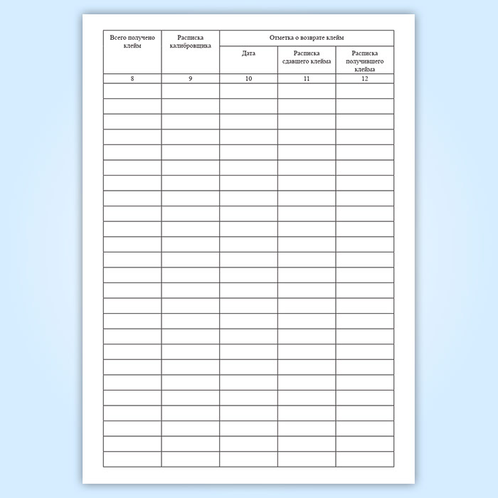Журнал выдачи и получения калибровочных клейм в Тюмени купить