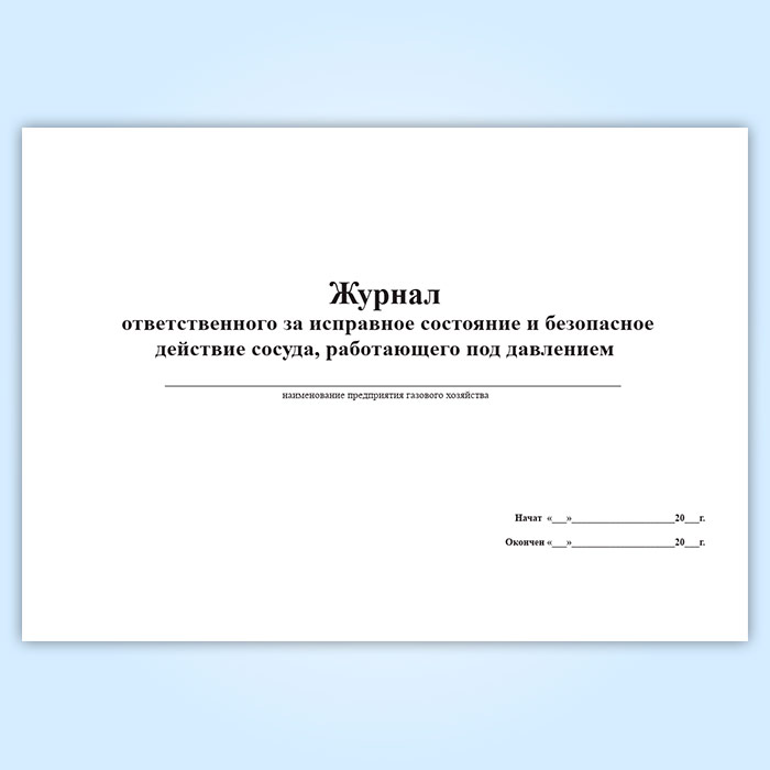Журнал ответственного за исправное состояние и безопасное действие сосуда, работающего под давлением в Тюмени купить