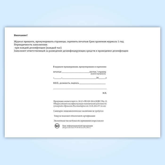 Журнал учета дезинфекций поверхностей в рамках профилактики распространения коронавирусной инфекции COVID-19 в Тюмени купить