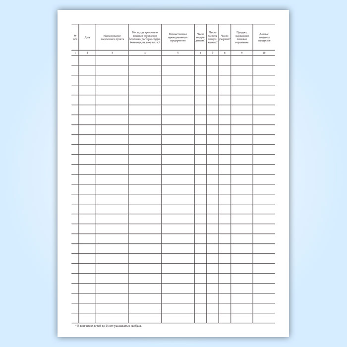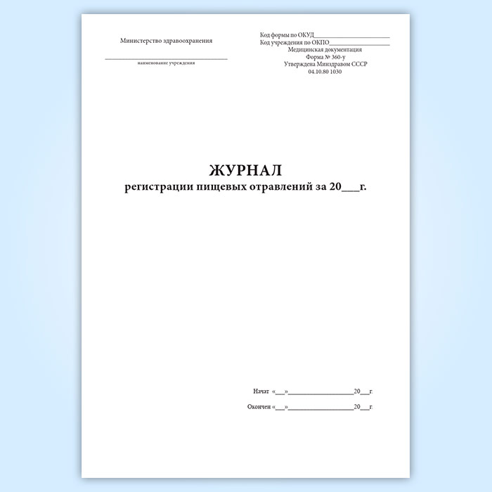 Журнал регистрации пищевых отравлений за год (форма 360/у) в Тюмени купить