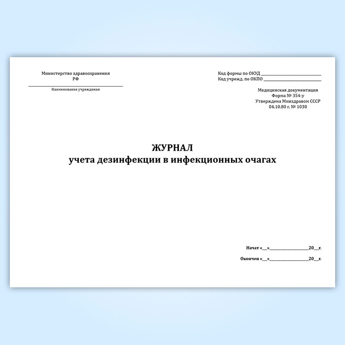 Журнал учета дезинфекции в инфекционных очагах (форма 354/у) в Тюмени купить