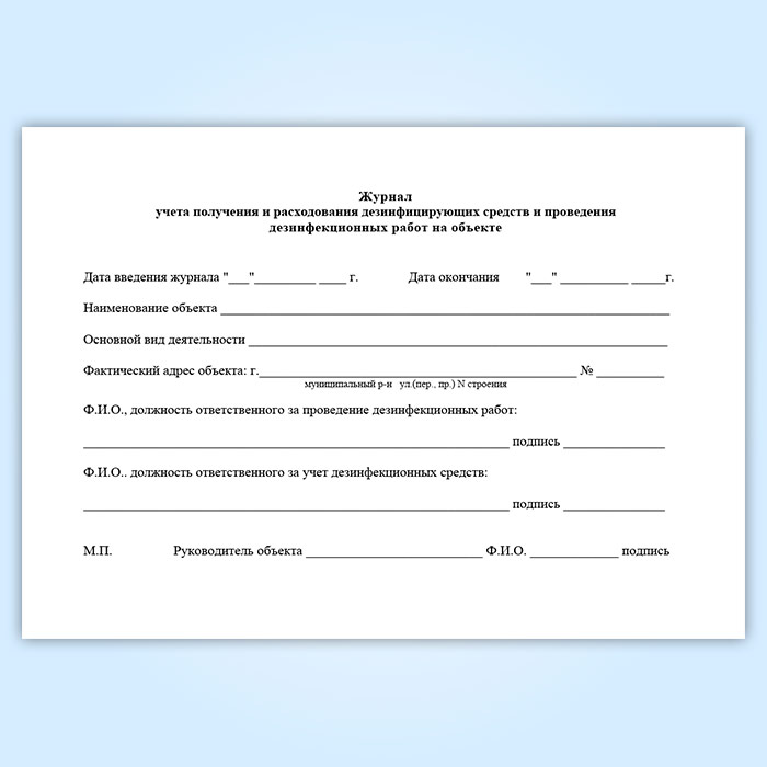 Журнал учета получения и расходования дезинфицирующих средств и проведения дезинфекционных работ на объекте в Тюмени купить