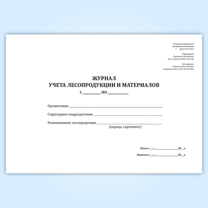 Журнал учета лесопродукции и материалов (форма ЛП-8) в Тюмени купить