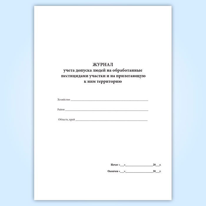 Журнал учета допуска людей на обработанные пестицидами участки и на прилегающую к ним территорию в Тюмени купить