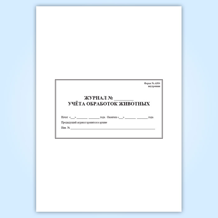 Журнал обработки животных (форма А 004) в Тюмени купить