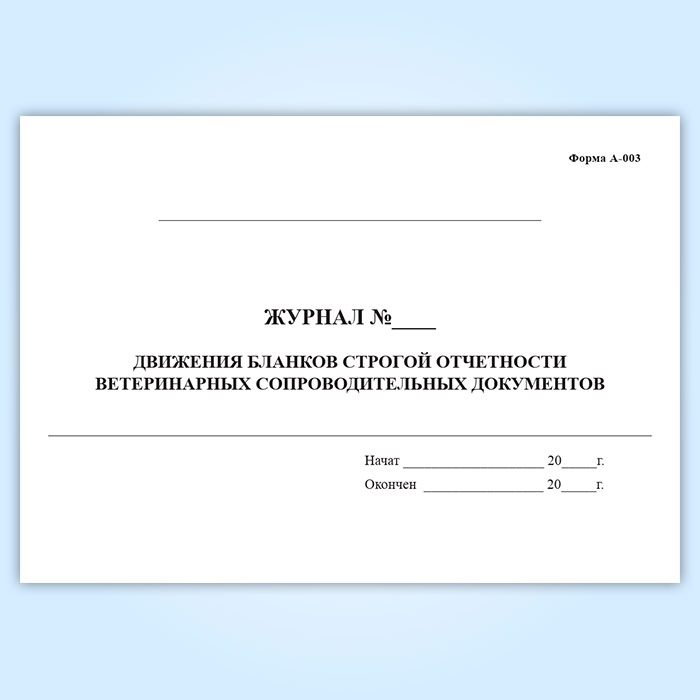 Журнал движения бланков строгой отчетности ветеринарных сопроводительных документов (форма А-003) в Тюмени купить