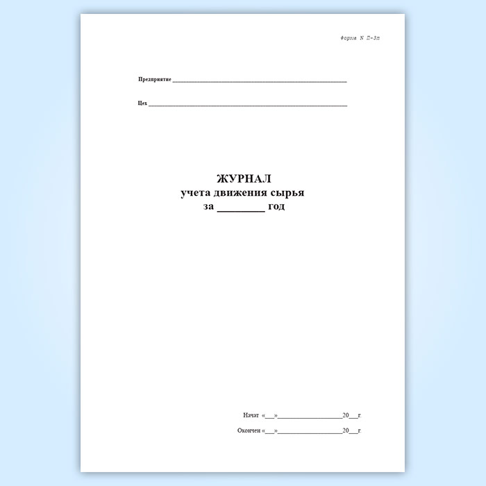 Журнал учета движения сырья (форма № П-3п) в Тюмени купить
